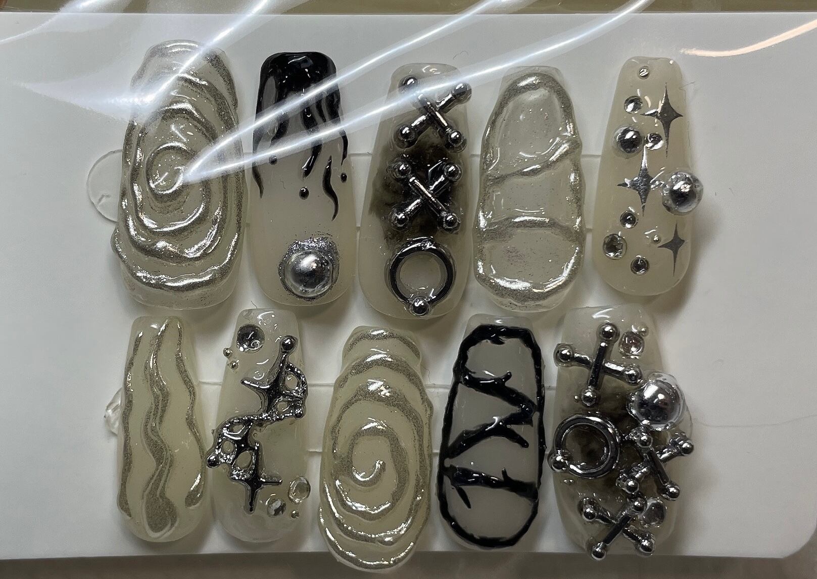 #ネイルチップ #ジェルネイル #ワンホン #韓国 #量産型 #ミラーネイル #しろ #バレリーナ #パンク